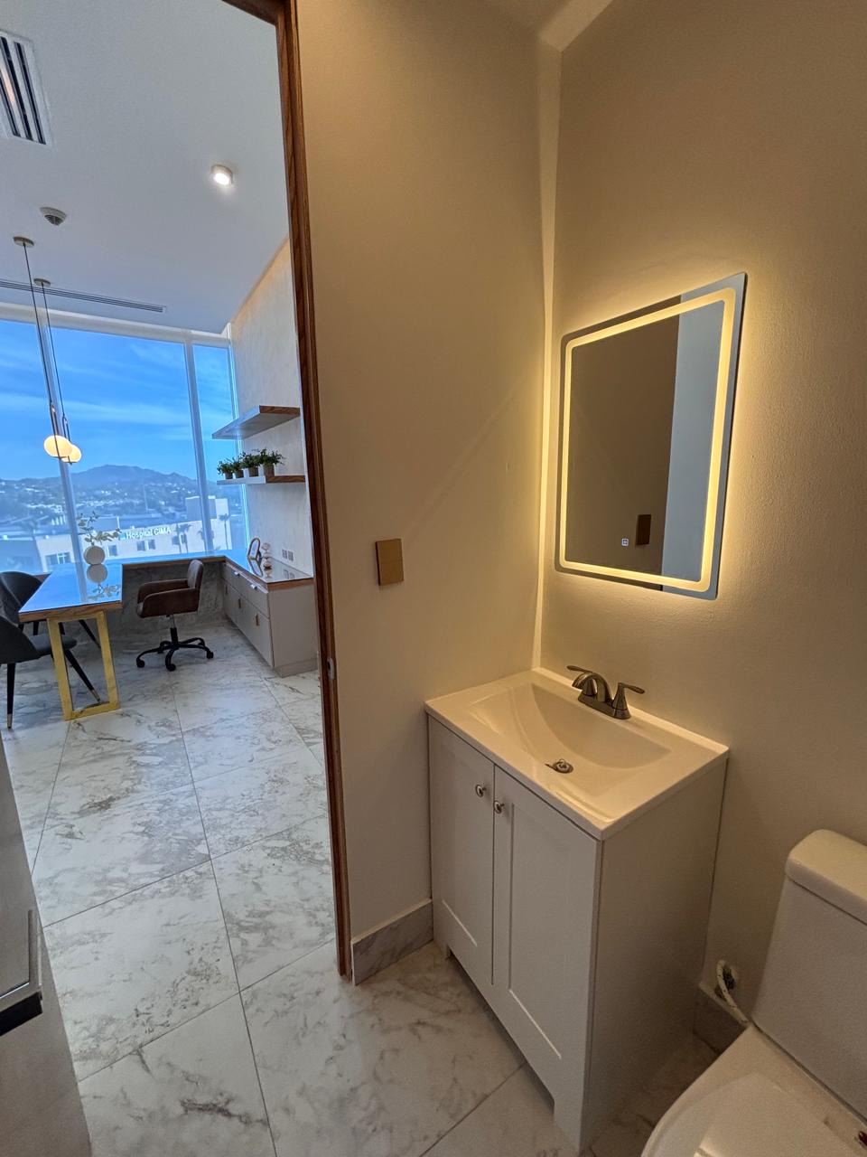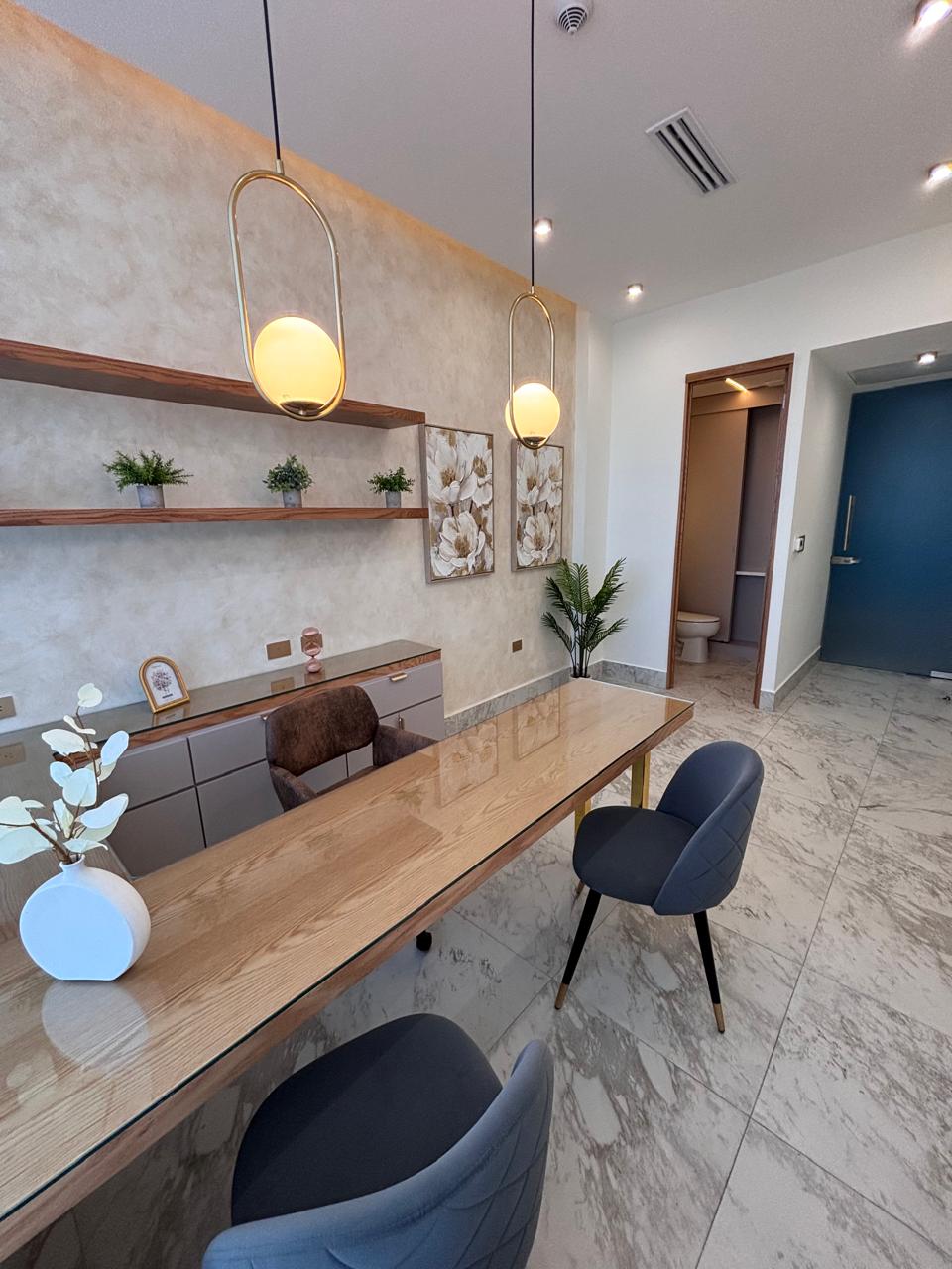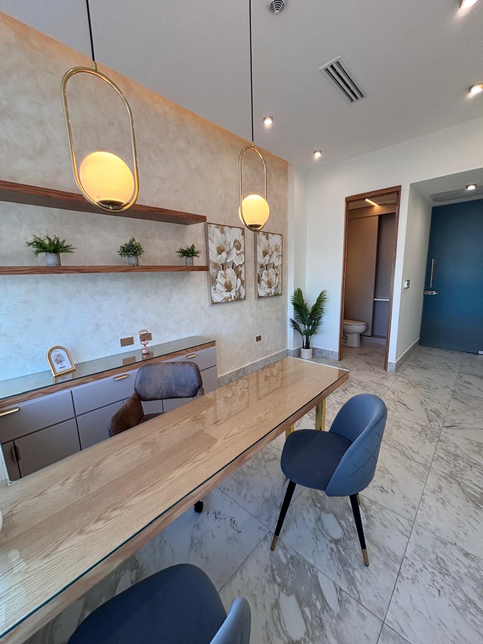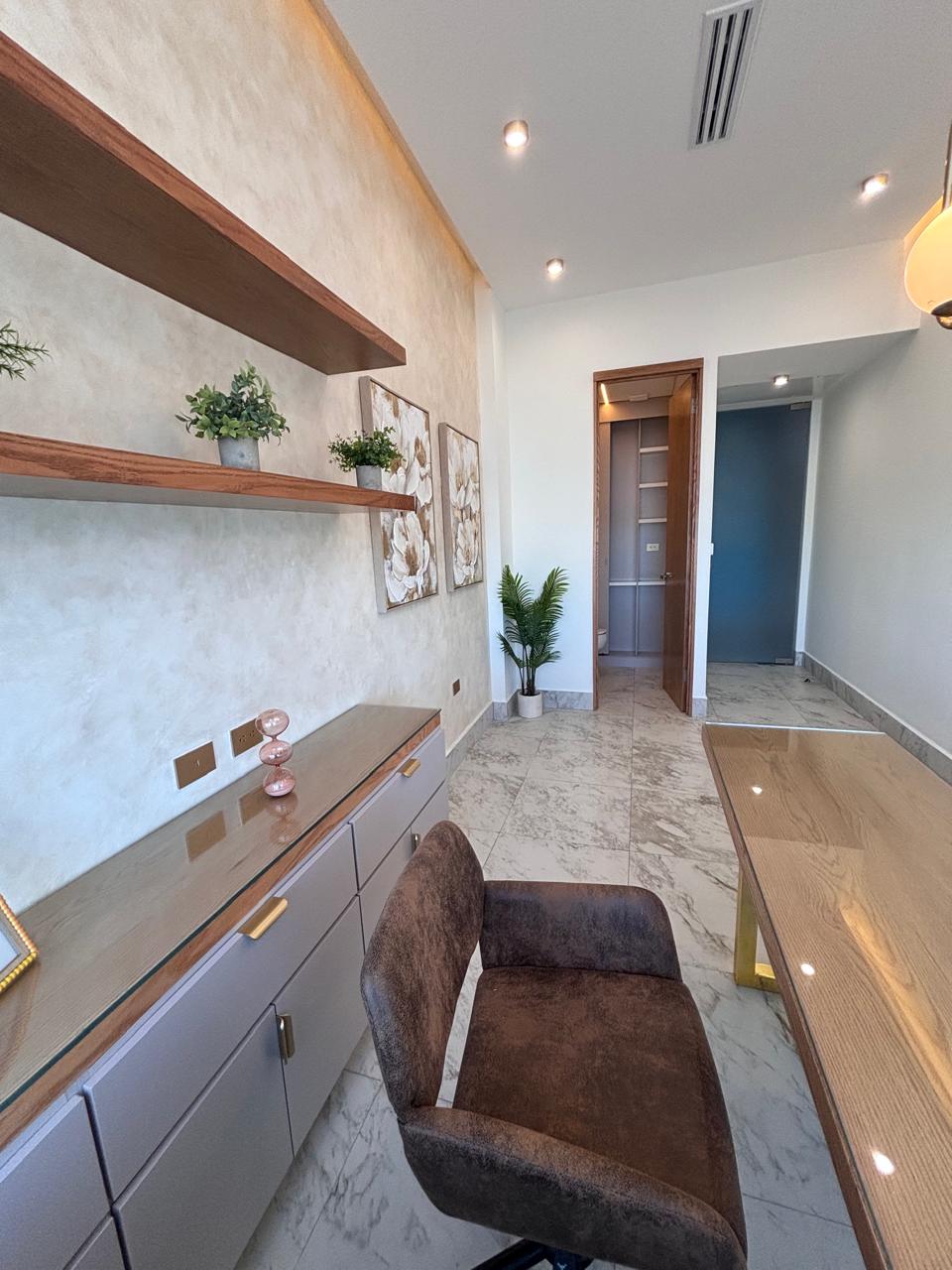 Bello consultorio con baño propio, muebles y acabados de lujo.