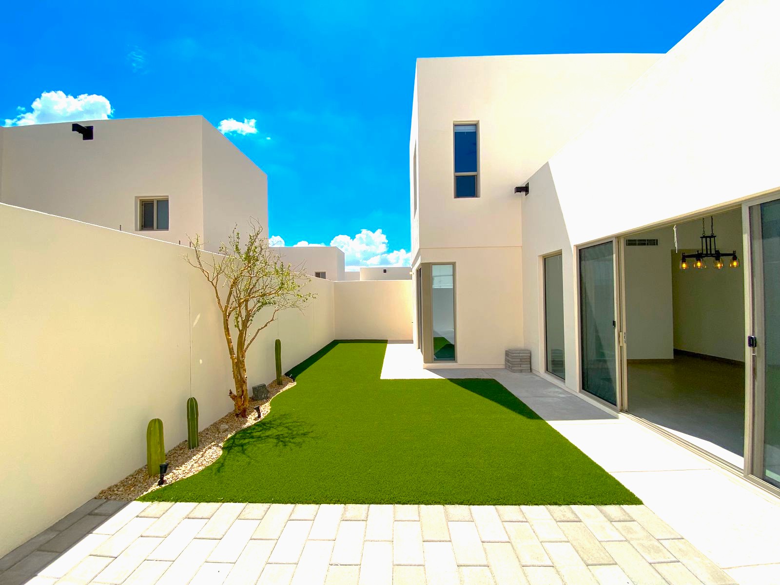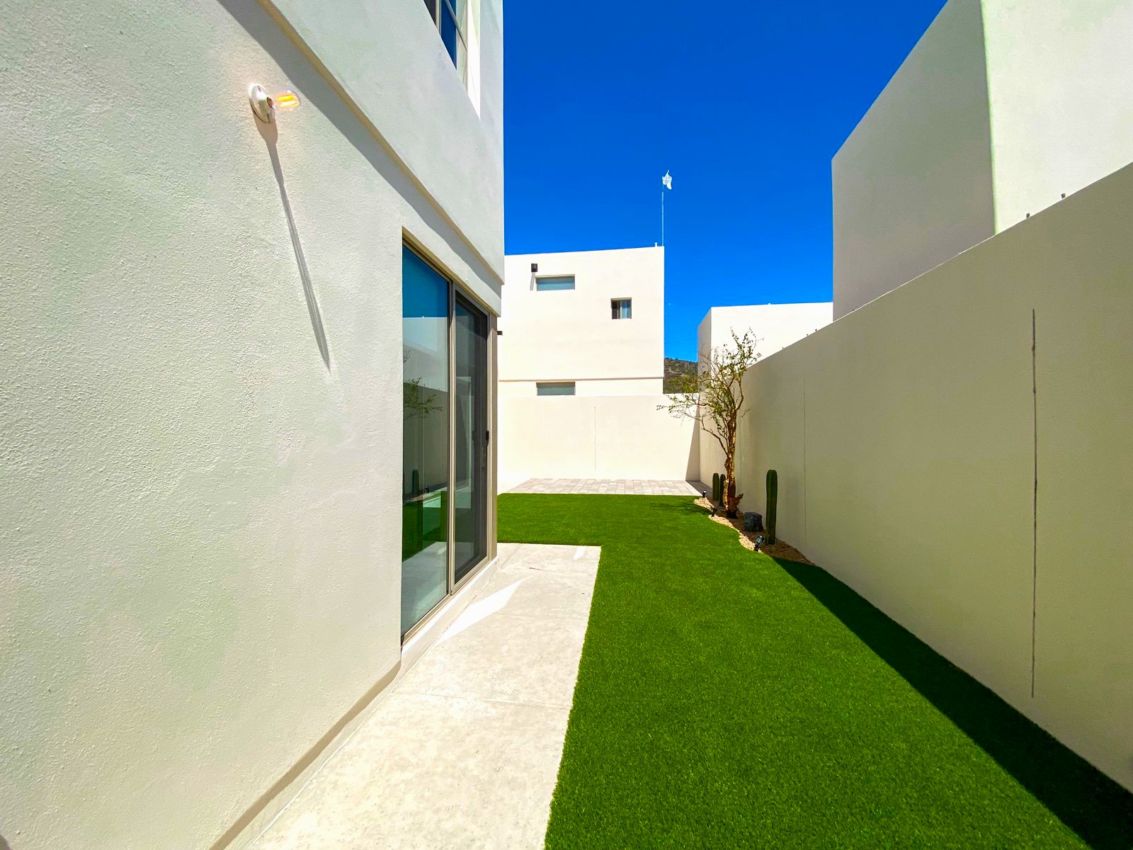🔺Cuarto de servicio con baño completo, pasillo de servicio con puerta de herrería, patio amplio decorado, con pasto sintético y adoquín.