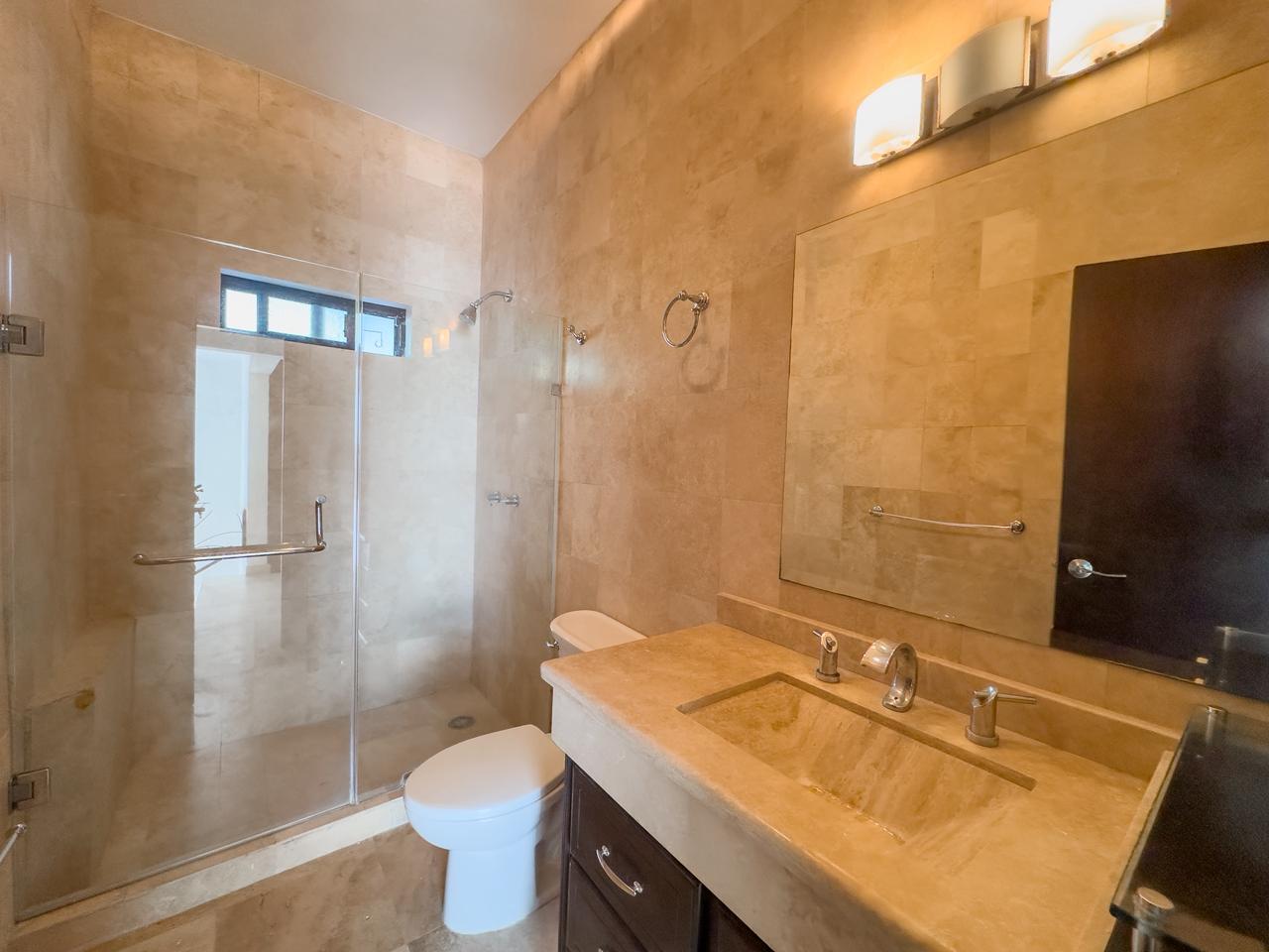 3 Recámaras, principal con Walk-in Clóset y baño completo e increíble vista al campo de golf, recámara secundaria con Walk-in Clóset y baño completo, 3er recámara con clóset y baño completo al exterior